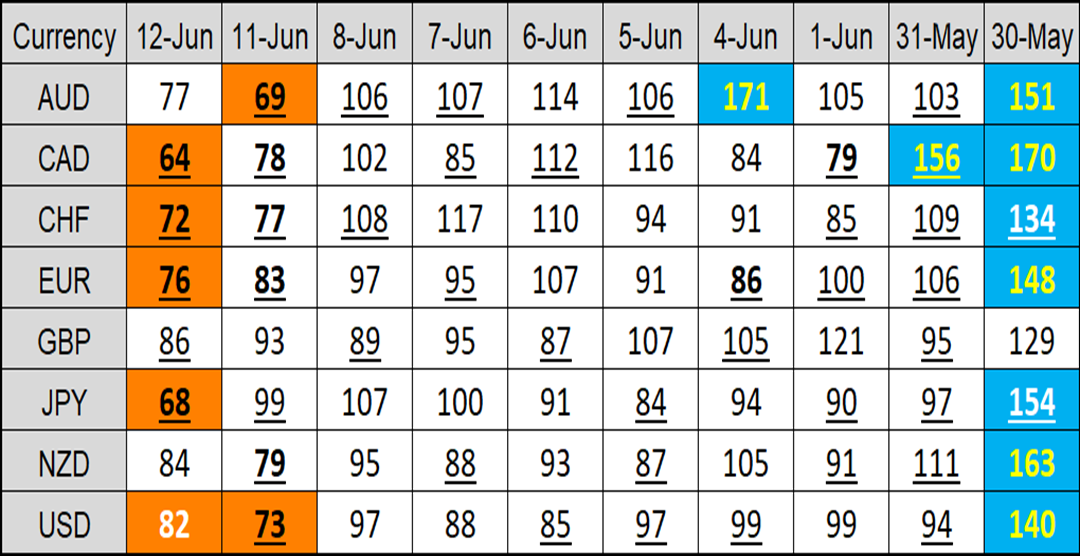 Highlights from the Daily ATS Forex Dashboard report going into Wednesday, 13 June-