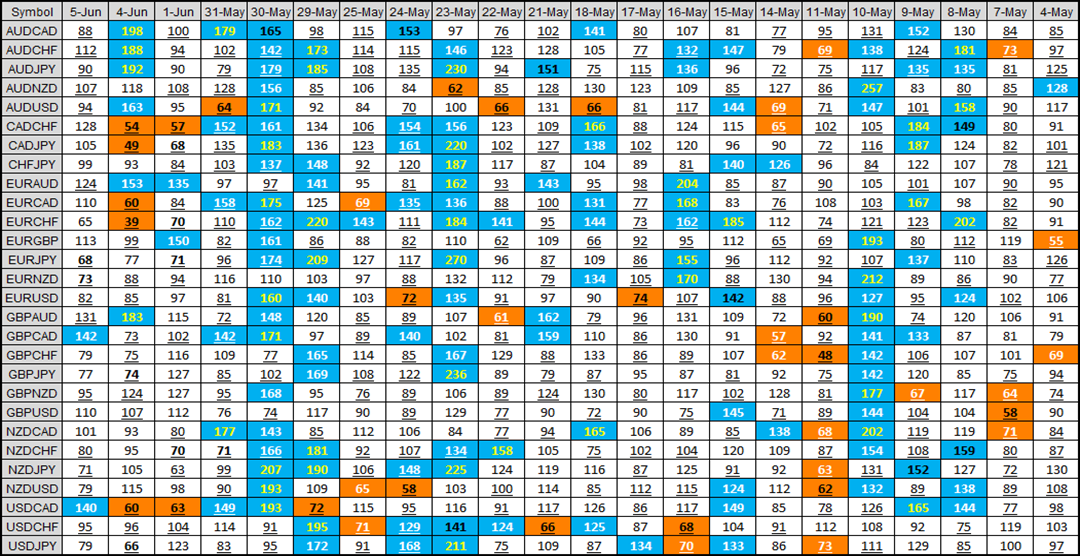 Highlights from the Daily ATS Forex Dashboard report going into Wednesday, 6 June-