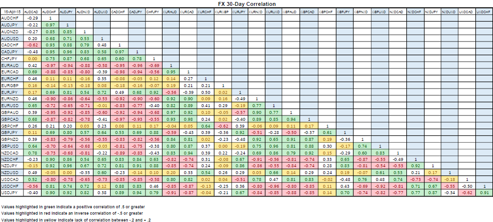 The 30-day correlation matrix from the weekly ATI report is included with this post for additional observation.